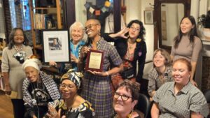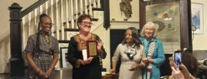 sharing the description below with participants at WIFP’s 45th Anniversary Celebration. Martha Allen, WIFP Director, is holding the Award. Vinie Burrows was unable to receive it in person because she is performing in Midsummer’s Night Dream.